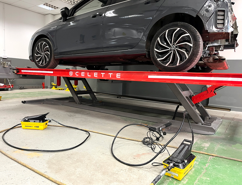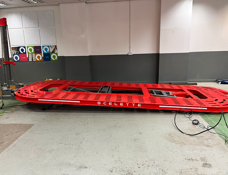 The system is lifted hydraulically and is delivered with 4 anchoring blocks and other accessories dedicated for frame and unibody vehicles.