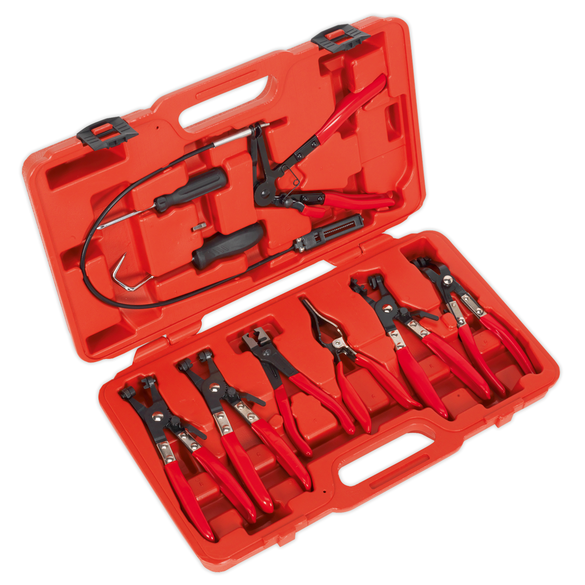 Contents: Remote Action Hose Clip Tool, Swivel Jaw Spring Wire Clip Pliers, Swivel Jaw Band Clip Pliers, Angled Band Clip Pliers, Flat Band Clip Pliers, Clic-R® Type Pliers, Hose Removal Pliers, Hose Pick, Double Ended Screwdriver