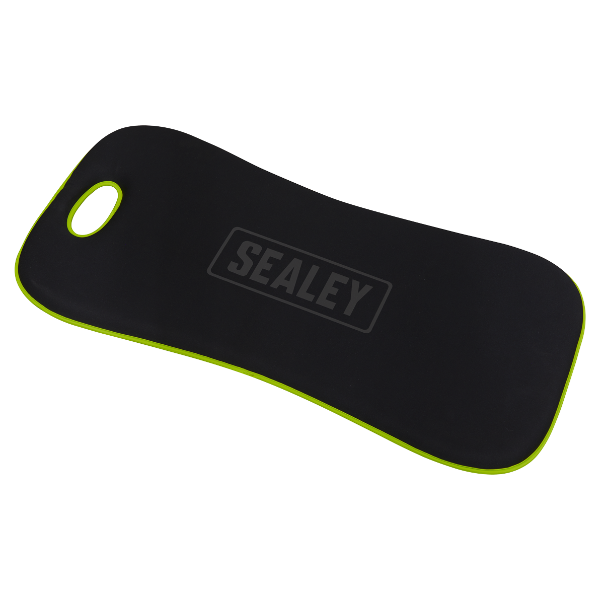 • Premium 40mm shock absorbing EVA large kneeling mat. • Neoprene wipe clean material. • Suitable for workshop, home and garden. • Cut-out handle.