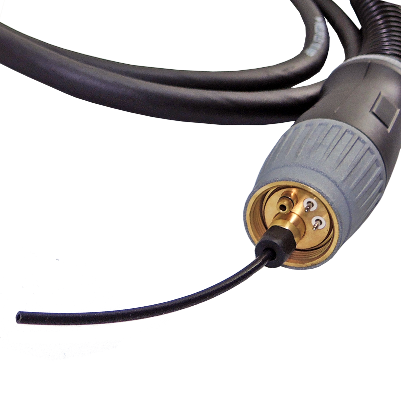 The preconfigured torch for MIG-soldering is equipped with a PTFE liner and a green handle.
