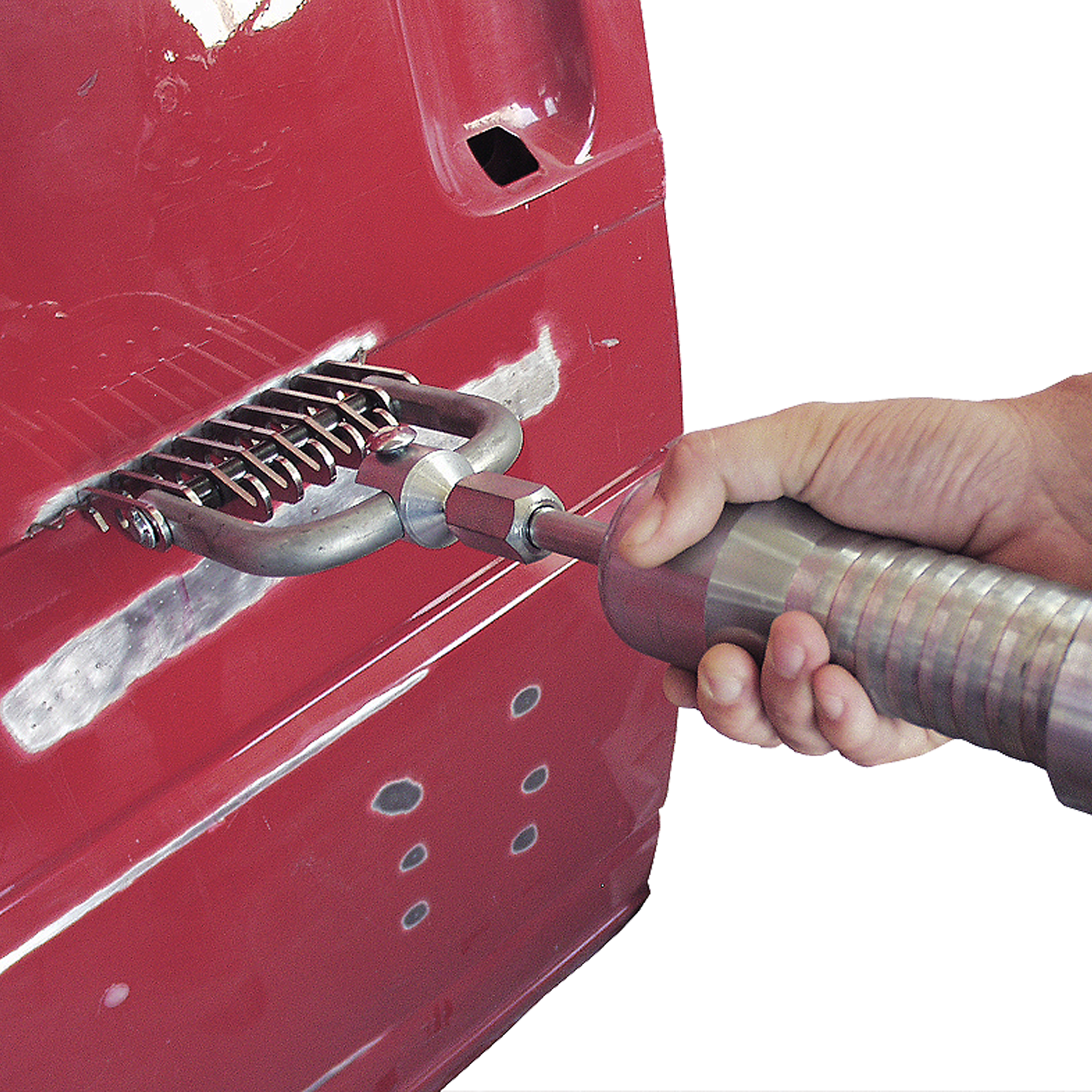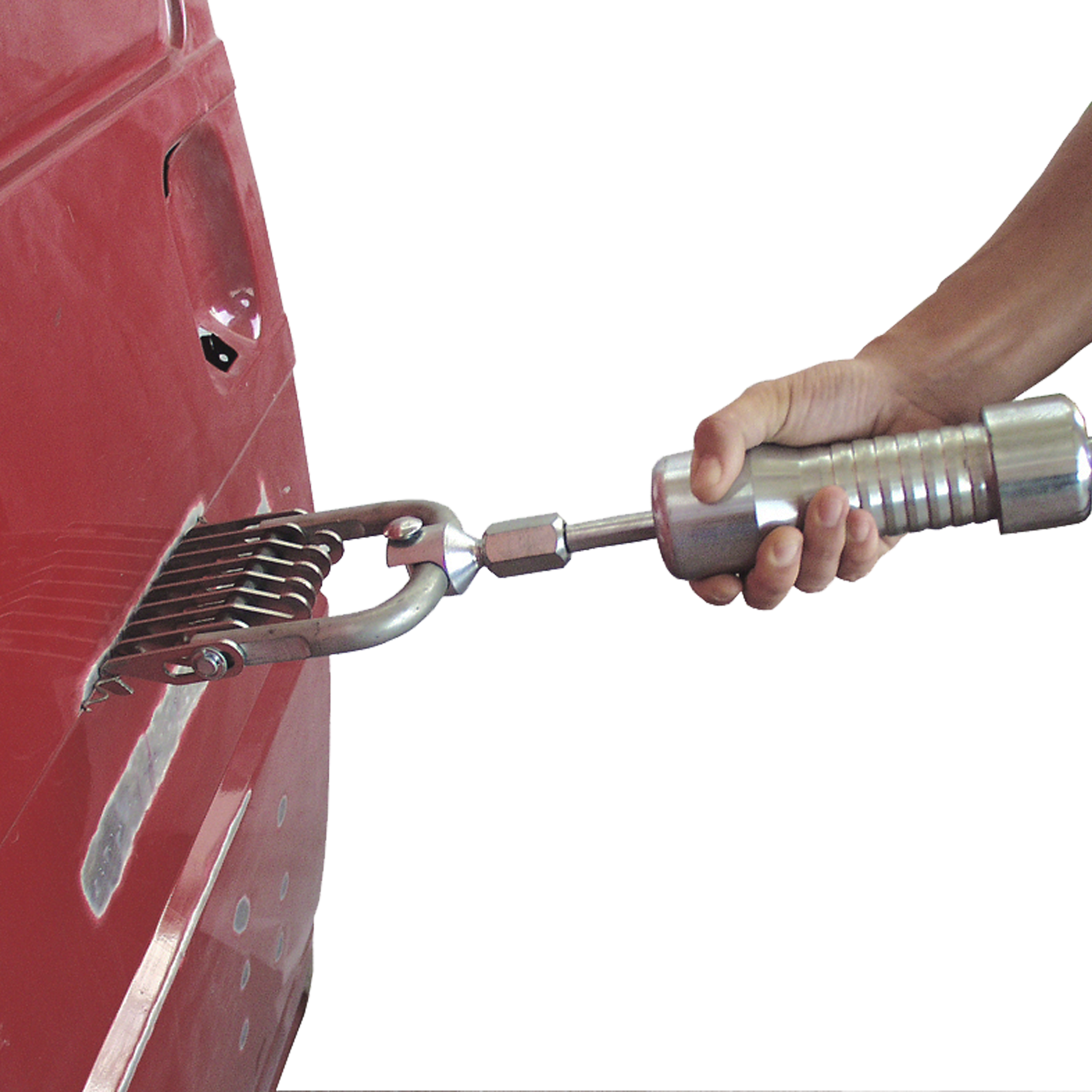 Slide hammer including adapter and bi-puller. The perfect set for pulling and straightening with wiggle wire.