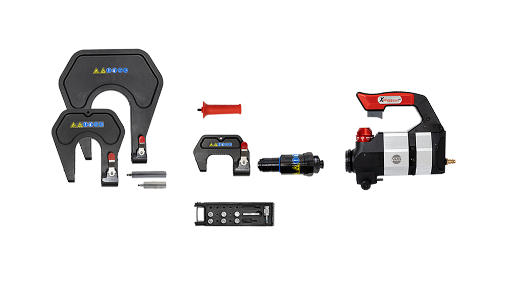 XPress 1000 SC standard riveter set for removal and installation of self piercing rivets with diameters of 3 mm and 5 mm.